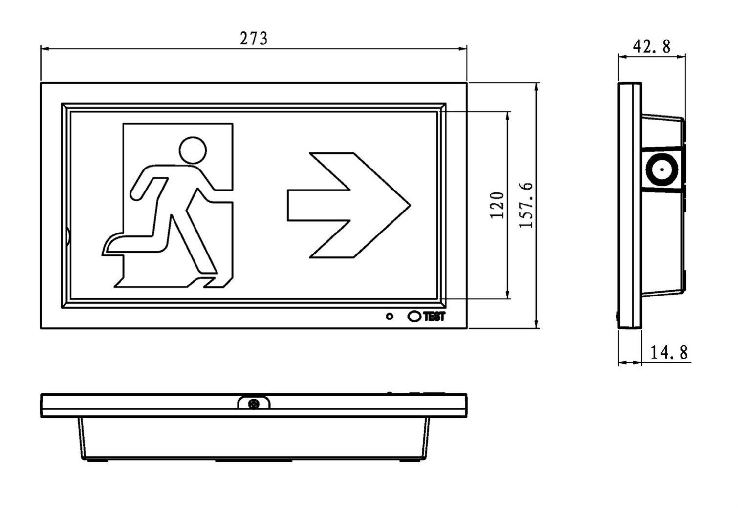 9112 series of LED EXIT lights are wall mounted with option for wall flush mounting, making it suitable for final exit and also where exit signs are required directly above exit doors. Power consumption is low at only 3.5 watts, with the sleek decorative finish of Dynamic Pro.
